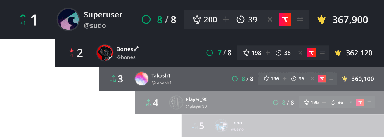 日程終了後、結果に応じてポイントが獲得できます。見事リーダーボードにランクインしたのなら、自分の成績・プロフィールをSNSやコミュニティ内でシェアしてみましょう!